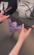 Wine Red Lace Thong – Elegant Satin & Floral Lace Underwear