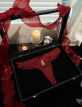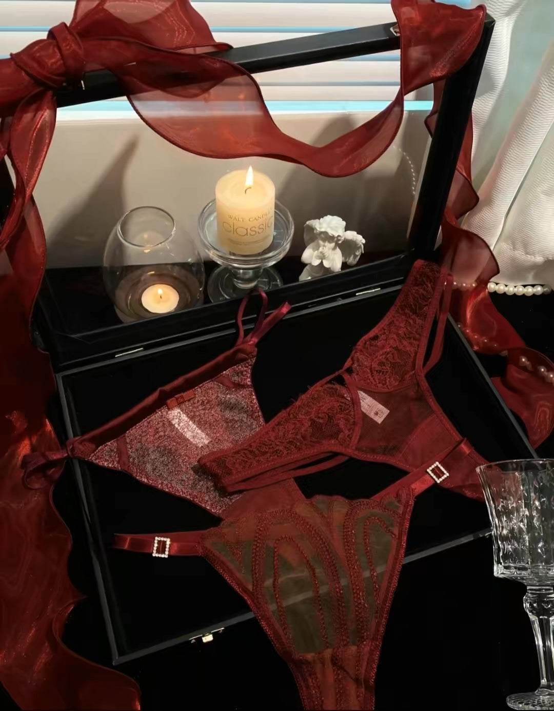 A luxurious burgundy lace thong with shimmering details. Elegant, seductive, and soft to the touch — a timeless piece for confident women.