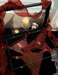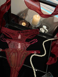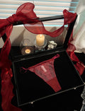 red lace thong, wine red underwear, sexy lingerie, see-through panties